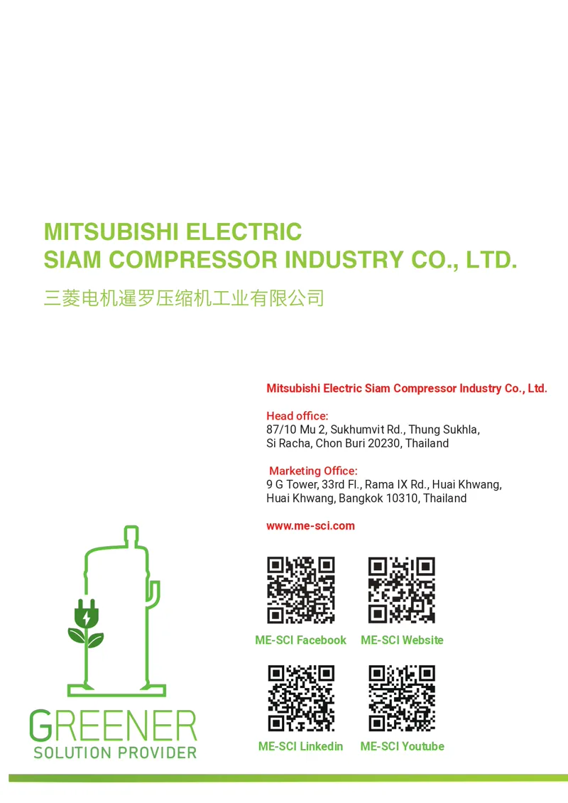 三菱电机暹罗压缩机工业有限公司(ME-SCI)成立于1990年5月25日,是泰国第一家用于空调应用的旋转式压缩机制造商,由日本三菱电机公司(Mitsubishi Electric Corporation of Japan)管理和安排,该公司在压缩机生产方面拥有70多年的经验。2003年,ME-SCI扩大了生产线,生产了采用框架柔顺机制(FCM)技术的先进卷轴。三菱电机(Mitsubishi Electric)针对涡旋压缩机的最新技术引入了能源优化技术,并将运行期间的损失降至最低。